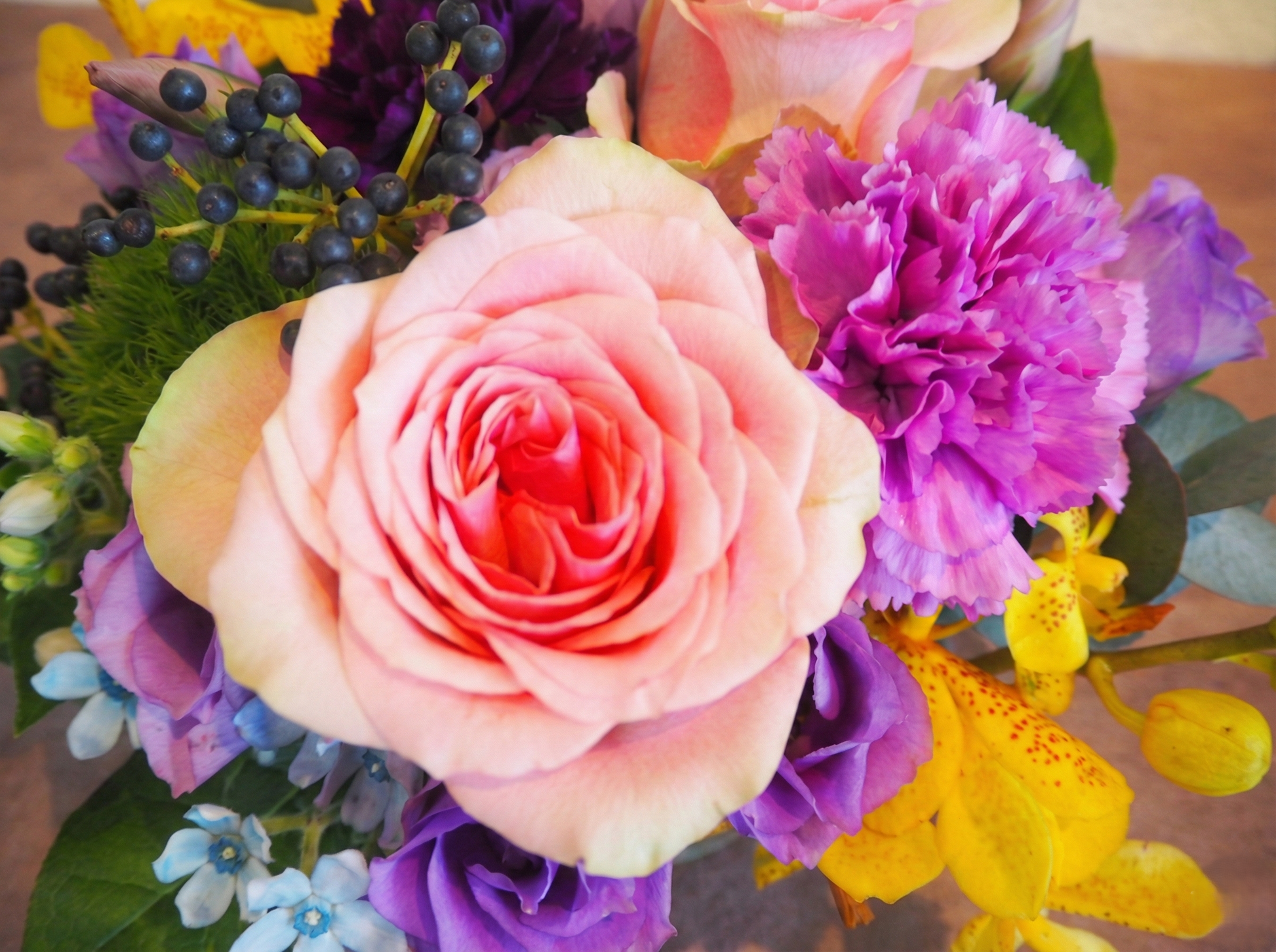 落ち着いた、ピンクと紫で華やかさとかわいさのあるアレンジです。